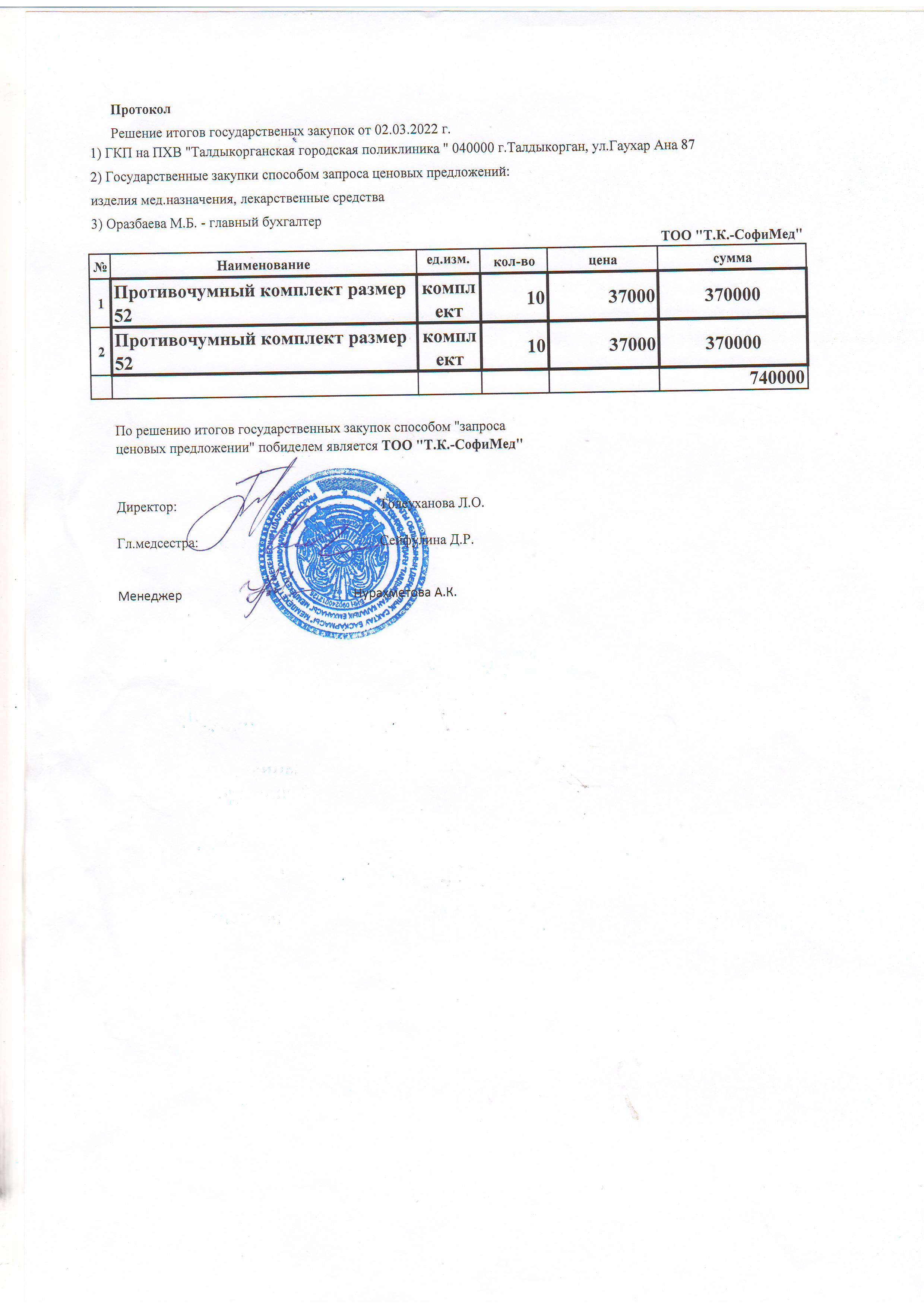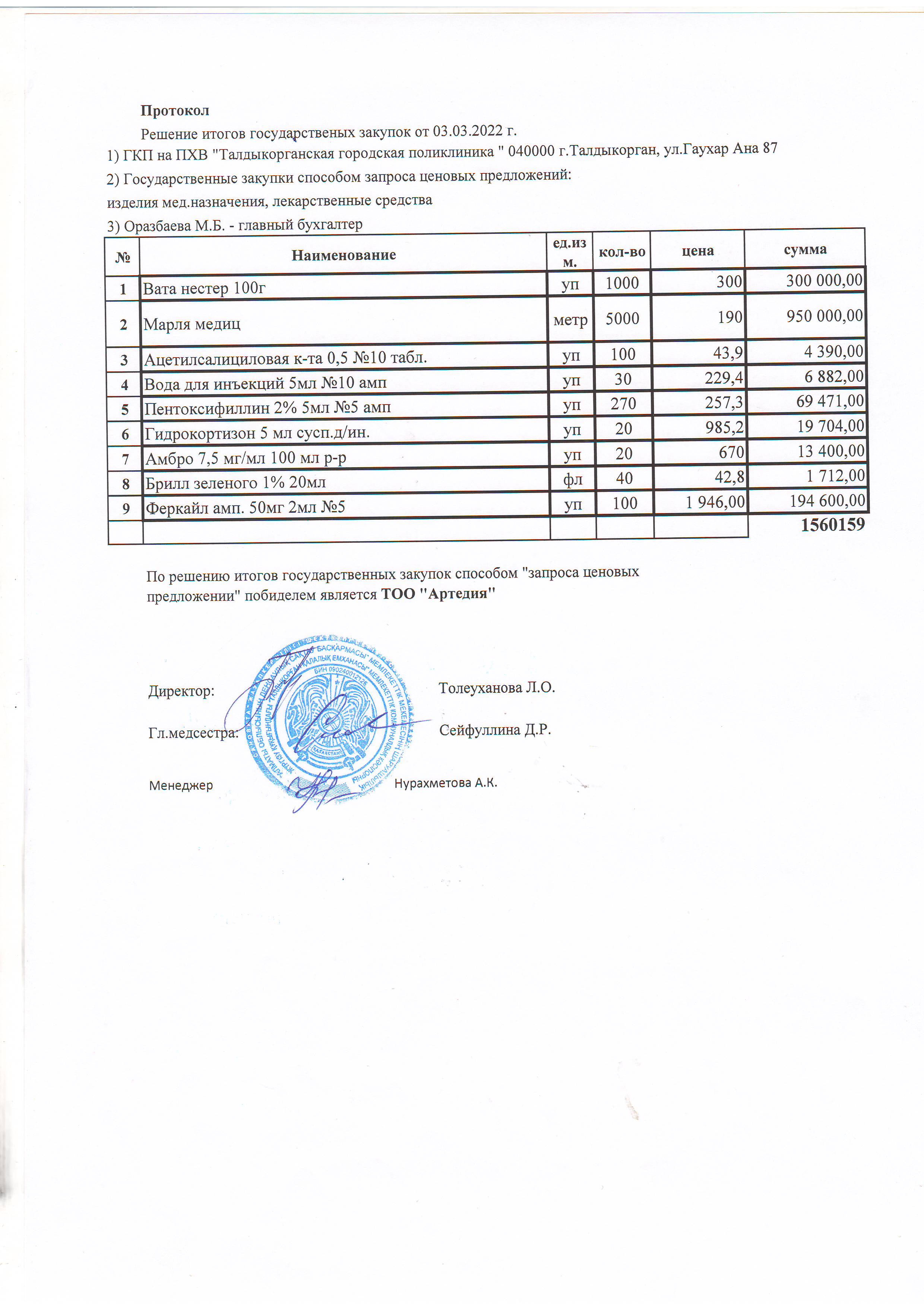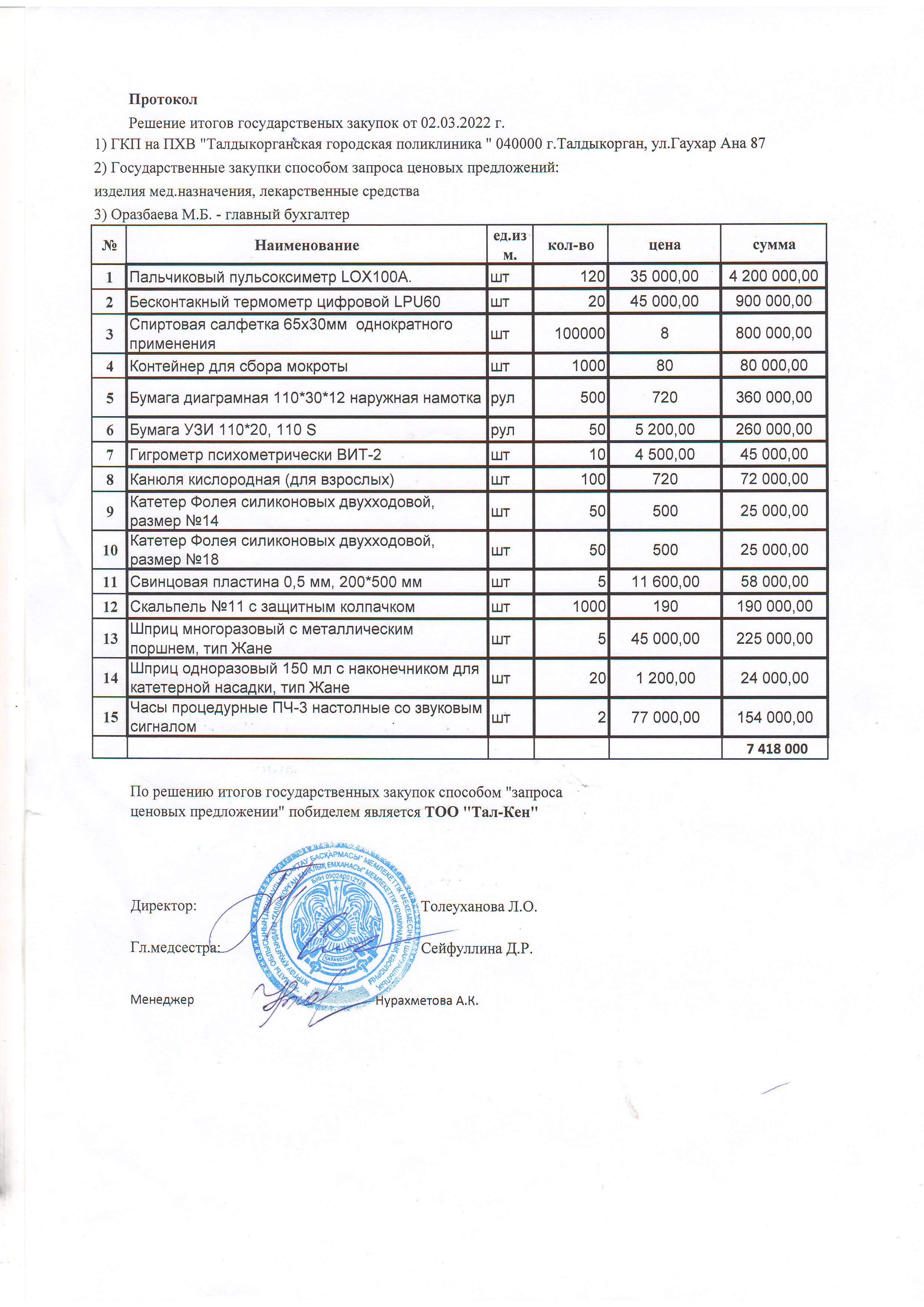 Решение итогов государственных закупок от 02.03.2022 г