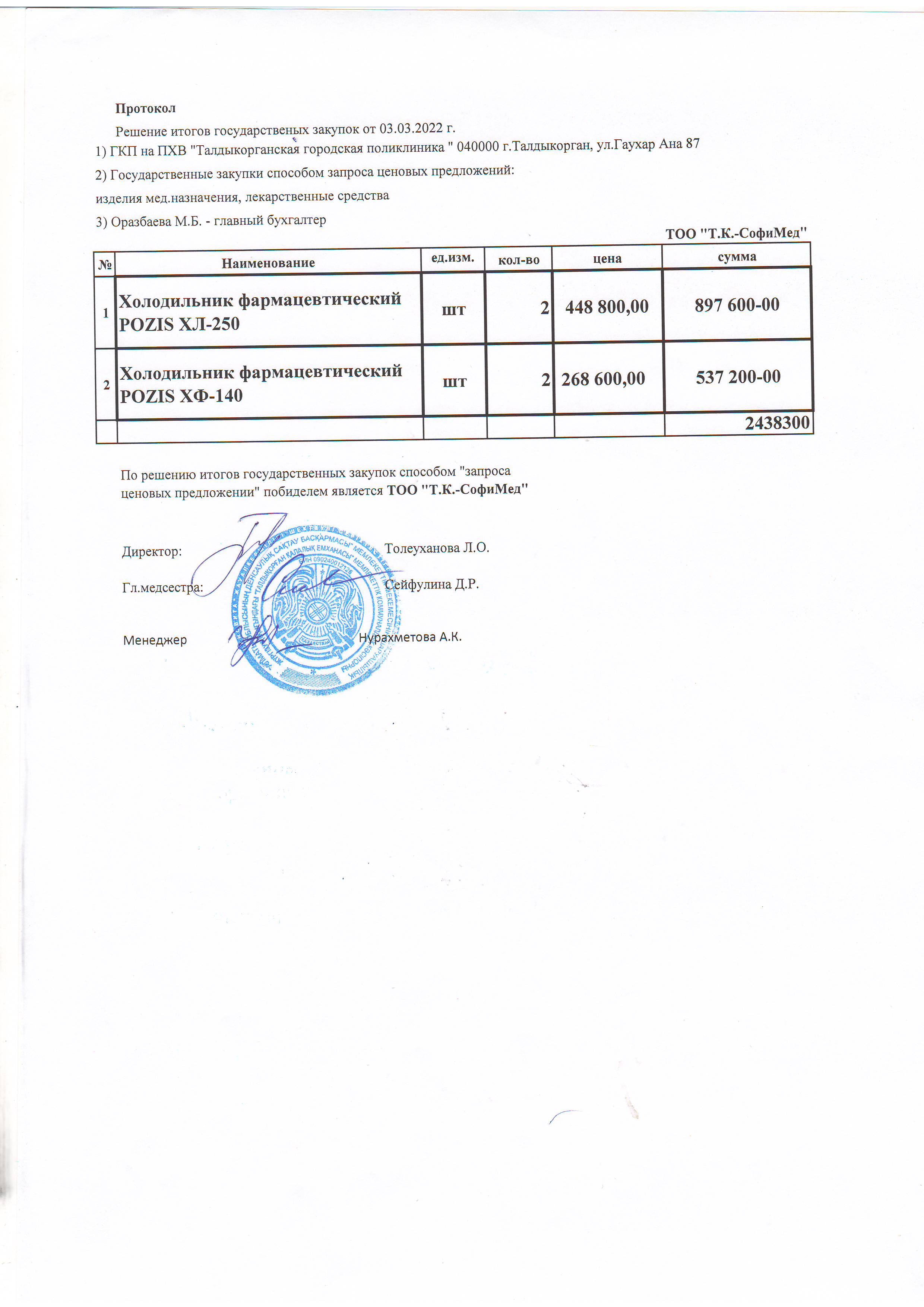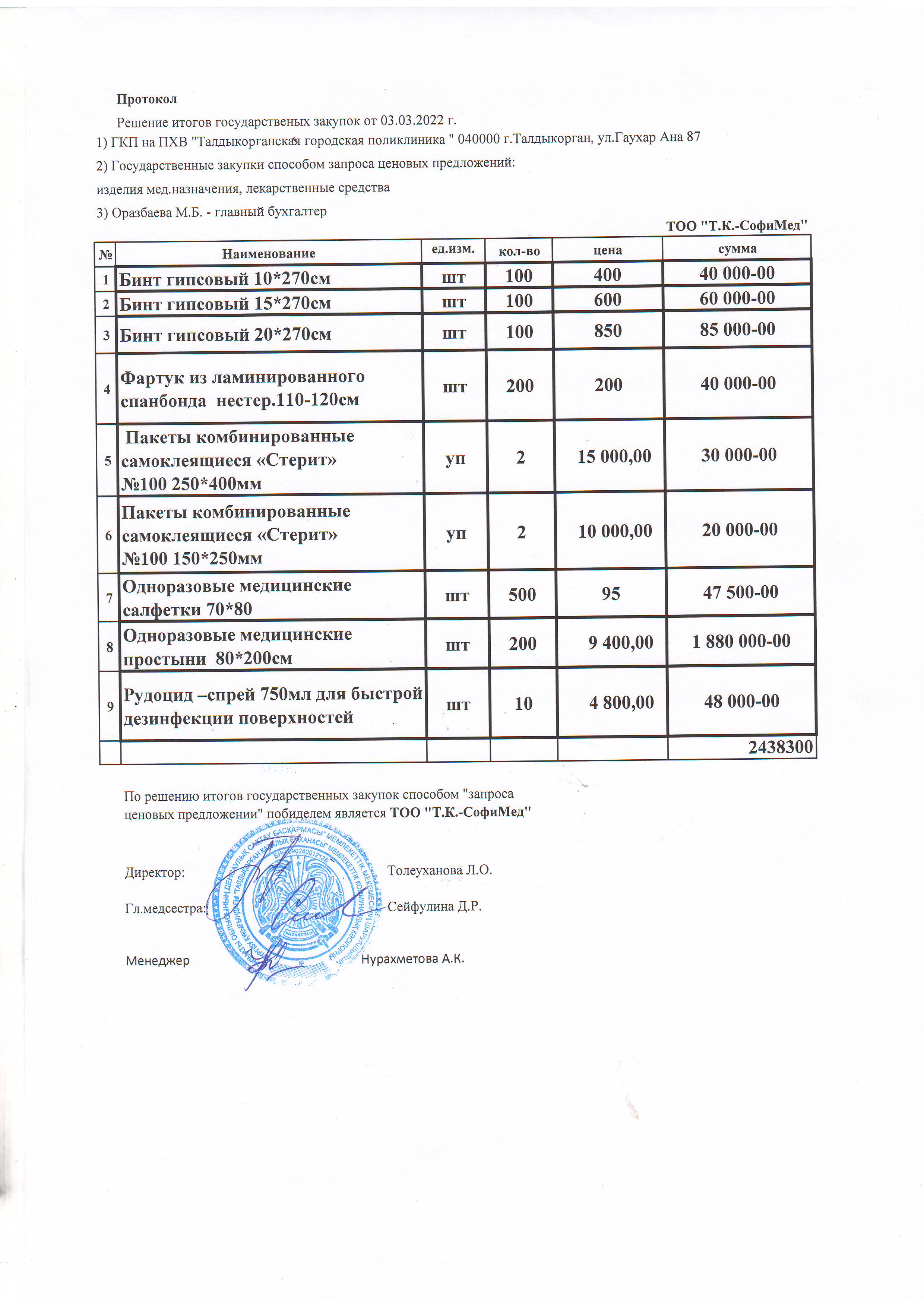 Решение итогов государственных закупок от 03.03.2022 г