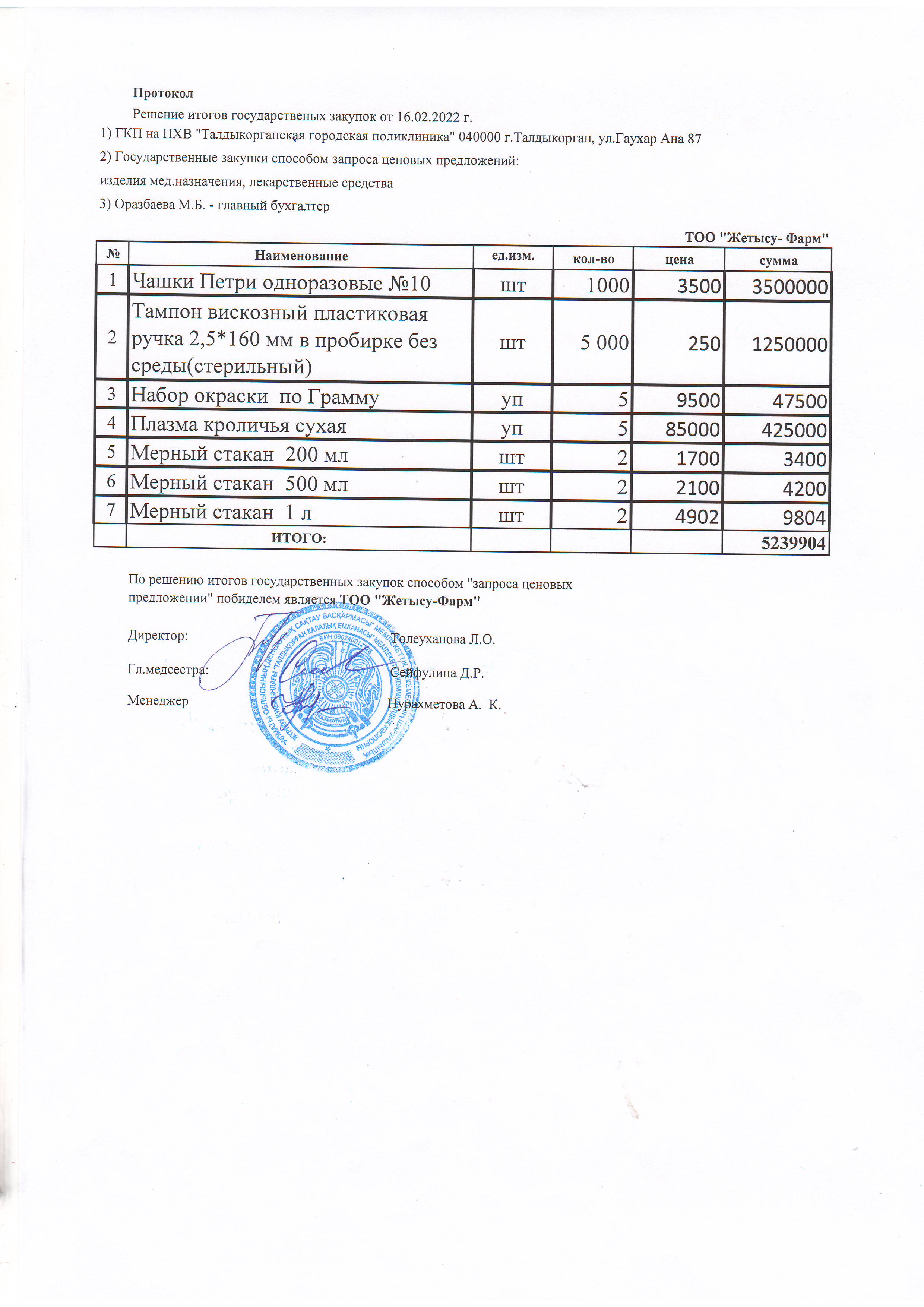 Решение итогов государственных закупок от 16.02.2022 г