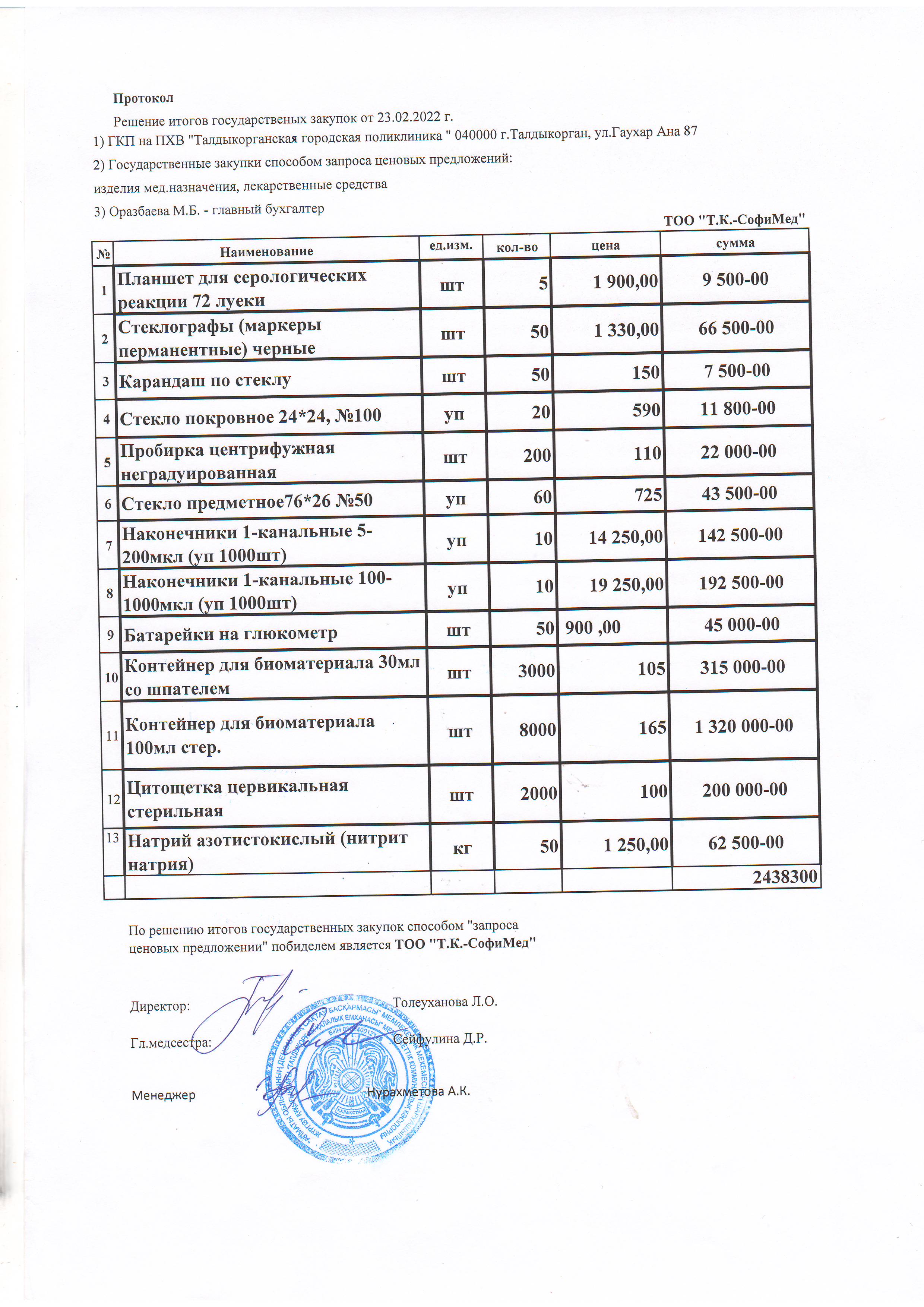 Решение итогов государственных закупок от 23.02.2022 г