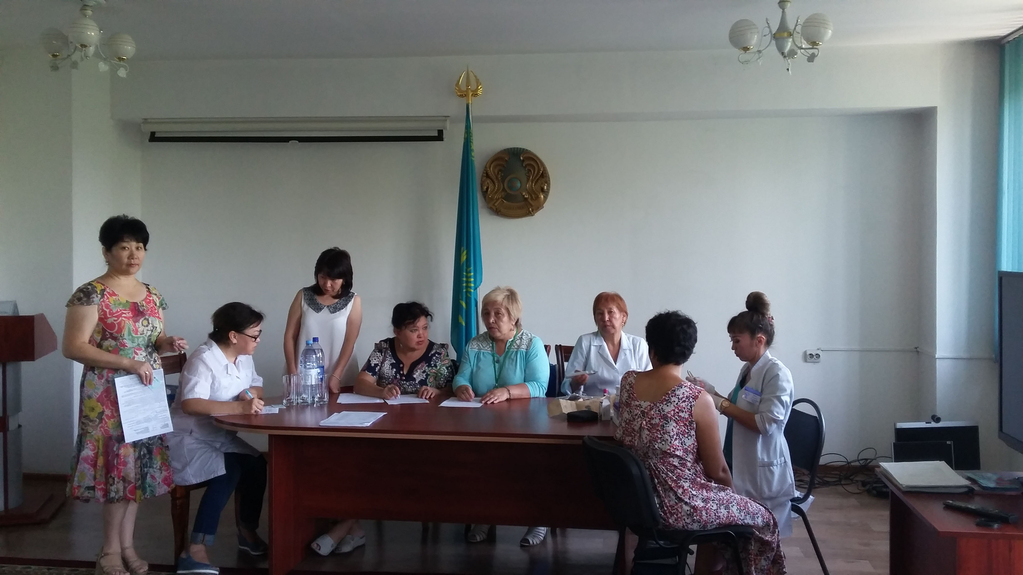 Для проведения профилактического осмотра женщин фертильного возраста, по приказу № 452 МЗ РК и скринингого обследования по организациям создана мобильная группа в составе: 1. Врач – терапевт 2. Врач – гениколог 3. Учасковая мед.сестра 4. Лаборант 5. Соц. Работник 6. Психолог 7. Врач ЗОЖ Согласно графика проведен осмотр работников УГСЭН Алматинской области 3июня, 5июня 2017 года Подлежала осмотру – 90 Осмотрено - 52