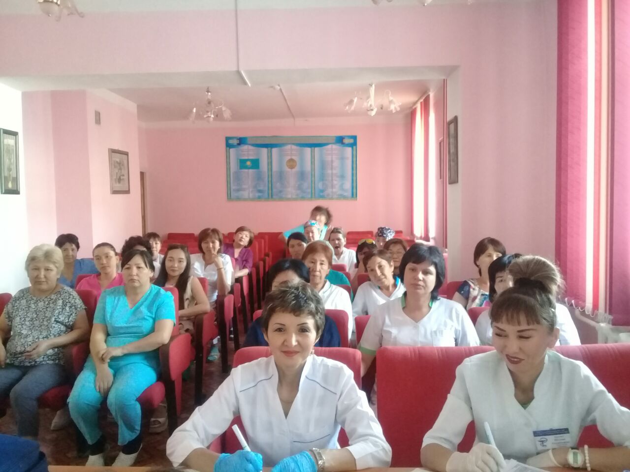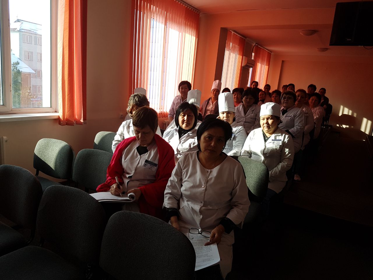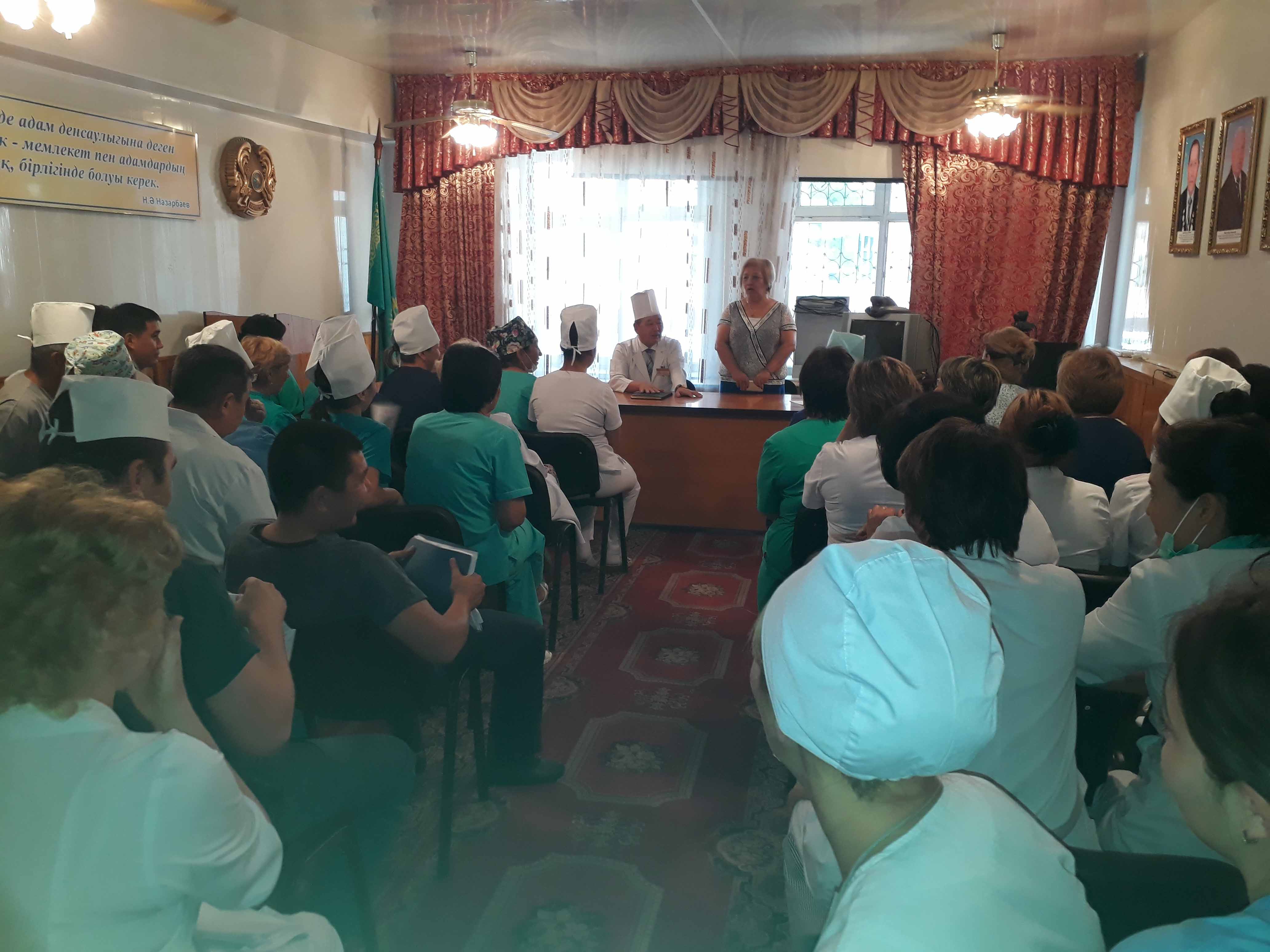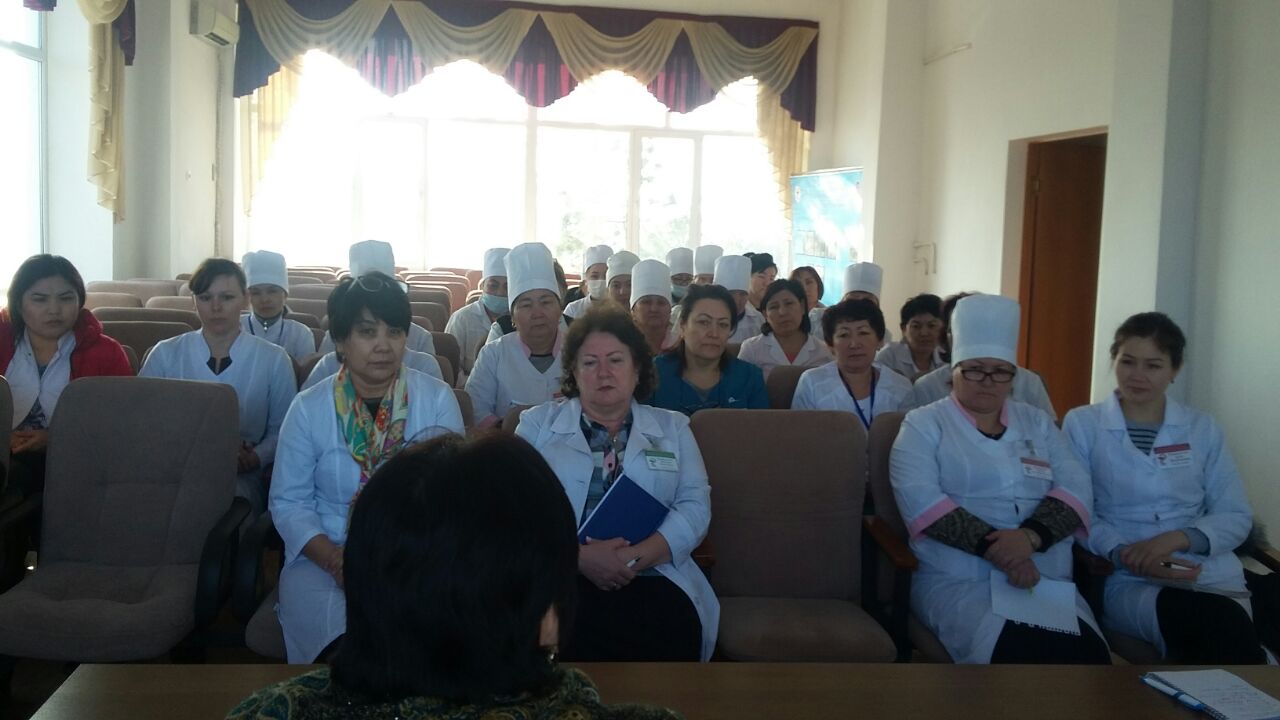 Принимали участие: заместитель руководителя управления здравоохранения Алматинской области по охране материнства и детства Ахметова Э. А., Региональный представитель РЦРЗ Садуова А. Т., зам. главных врачей поликлиник и больниц области.